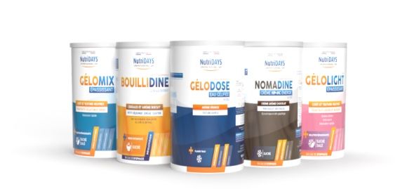 Nutridays offre une gamme complète de compléments nutritionnels prêts à l’emploi, incluant des poudres épaississantes, des eaux gélifiées, ainsi que des solutions enrichies en protéines et en calories, adaptées aux personnes convalescentes, dénutries ou ayant des troubles de la déglutition.